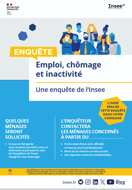 Cette enquête permet de déterminer combien de personnes ont un emploi, sont au chômage ou ne travaillent pas (étudiants, retraités…). Elle est la seule source permettant de nous comparer avec nos voisins européens. Elle fournit également des données originales sur les professions, l’activité des femmes ou des jeunes, les conditions d’emploi ou la formation continue.