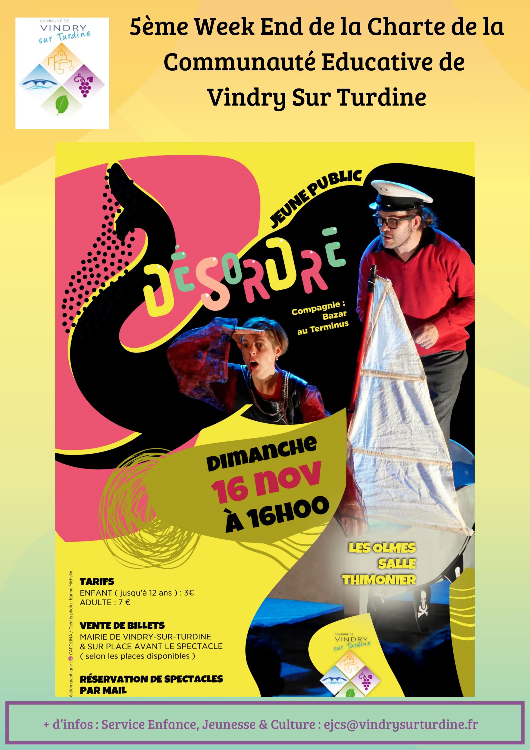 novembre, 2025 Charte de la Communauté Éducative 16novToute la journéeCharte de la Communauté Éducative Horaire Toute la journée (Dimanche) LieuSalle des fêtes - Les Olmes Organisé par Commune de Vindry-sur-TurdineCommune de Vindry-sur-Turdine CalendrierAgenda