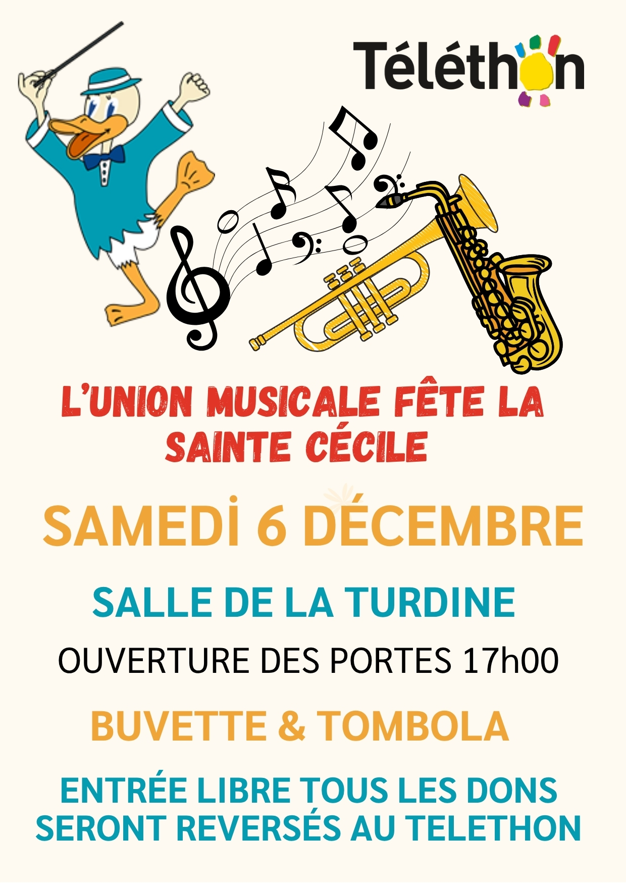 décembre, 2025 Sainte-Cécile : Téléthon 06déc17 h 00 minSainte-Cécile : Téléthon Horaire (Samedi) 17 h 00 min LieuSalle de la Turdine – Pontcharra-sur-Turdine Organisé par Union Musicale Pontcharra / Saint-ForgeuxUnion Musicale Pontcharra / Saint-Forgeux CalendrierAgenda