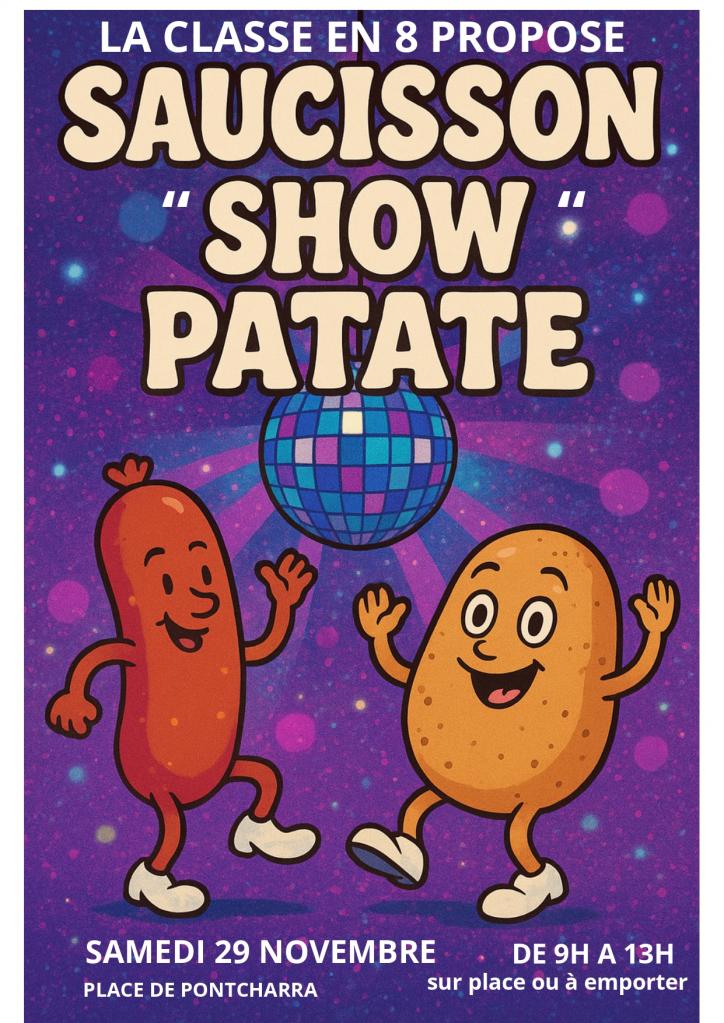 novembre, 2025 Vente de Saucissons 29nov9 h 00 min13 h 00 minVente de Saucissons Horaire (Samedi) 9 h 00 min - 13 h 00 min LieuPlace Jean XXIII Organisé par Classes en 8 CalendrierAgenda