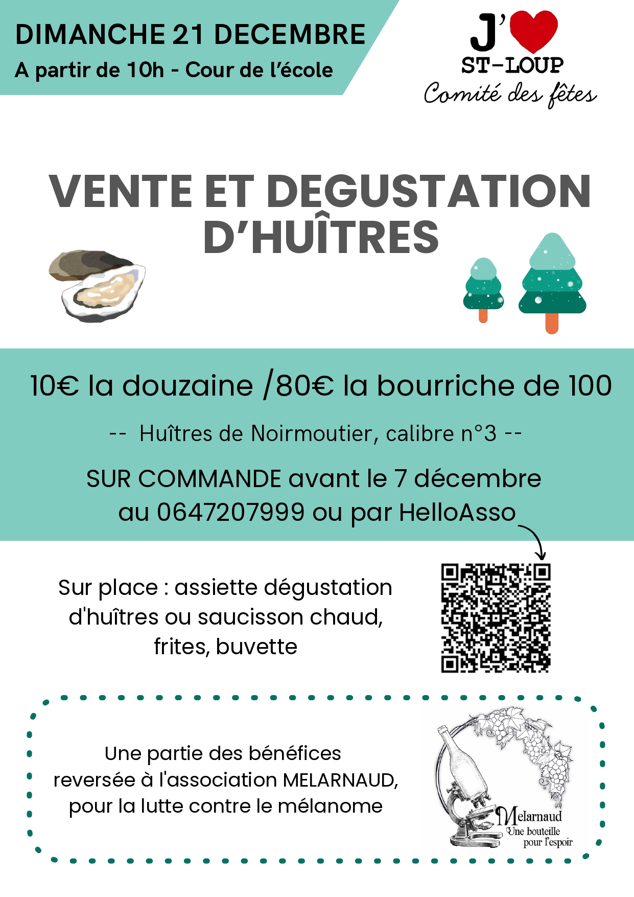 décembre, 2025 Vente d'huîtres 21déc10 h 00 minVente d'huîtres Horaire (Dimanche) 10 h 00 min LieuSaint-Loup Organisé par Comité des fêtes CalendrierAgenda