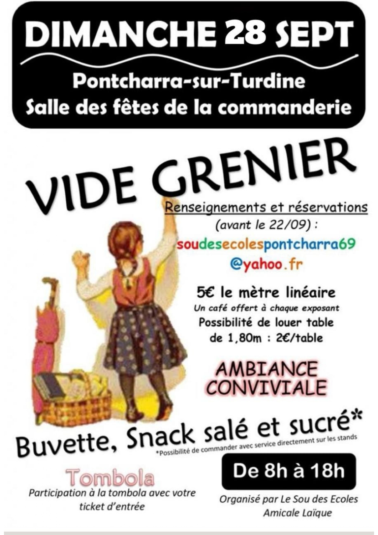 septembre, 2025 Vide Grenier Salle de la Commanderie - Pontcharra-sur-Turdine Rue de la Commanderie, 69490 Vindry-sur-Turdine 28sep0 h 00 min18 h 00 minVide Grenier Horaire (Dimanche) 0 h 00 min - 18 h 00 min LieuSalle de la Commanderie - Pontcharra-sur-TurdineRue de la Commanderie, 69490 Vindry-sur-Turdine Organisé par Sou des écoles CalendrierAgenda